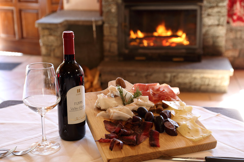 The restaurant offers a carefully selected selection of typical Aosta Valley and local dishes, as well as the option of enjoying snacks and aperitifs on the panoramic terrace overlooking the mountains or in the dining room overlooking the fireplace.